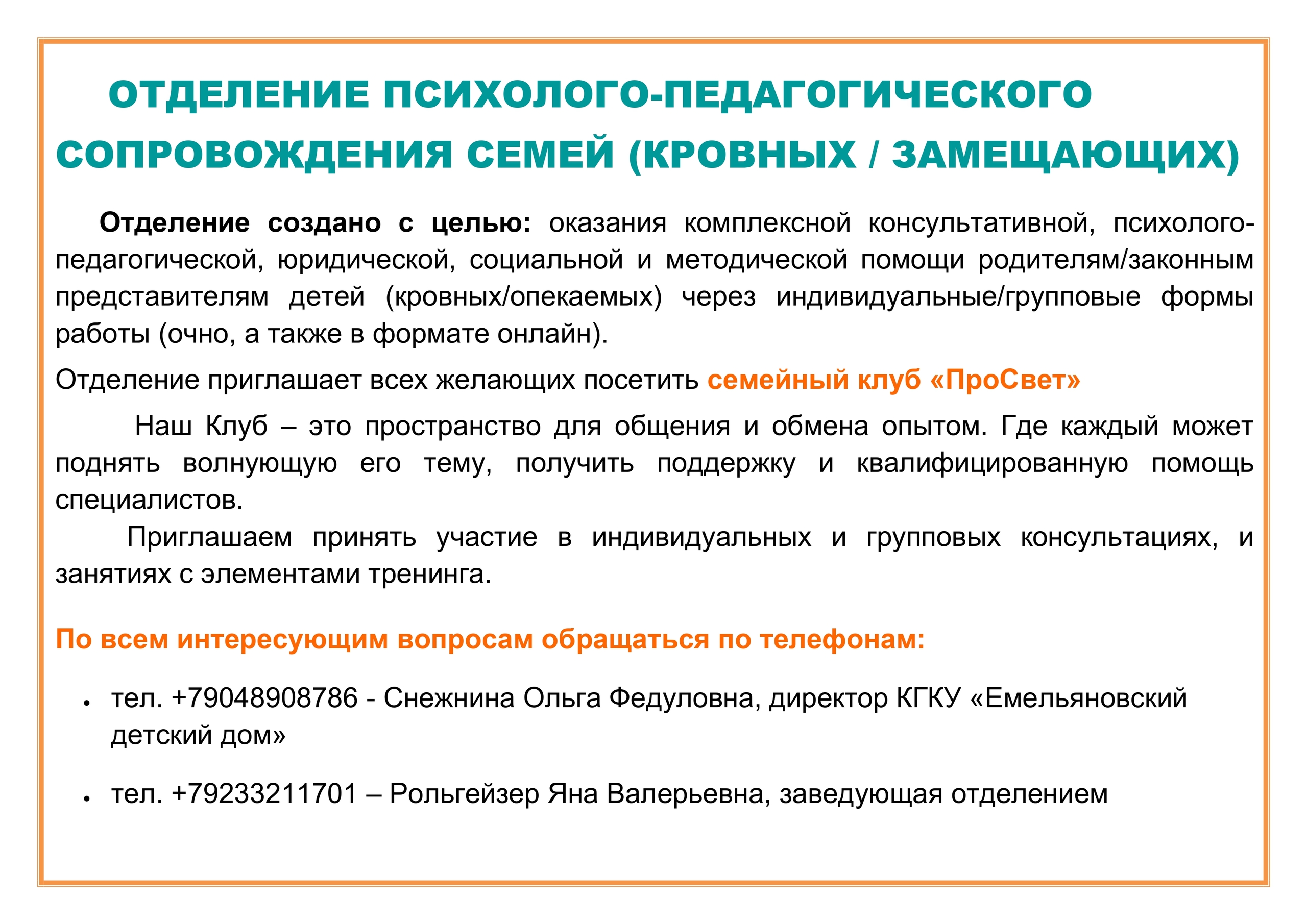 Положение о службе по работе семьями в КГКУ "Емельяновский детский дом"